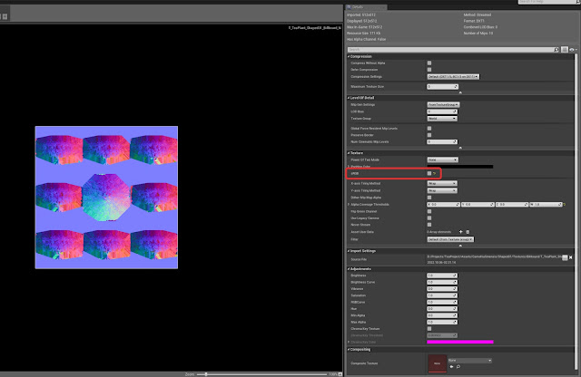 Recently, I ran into some shading issues using a world space normal map on my billboards. When instanced meshes have different rotations, it seems Unreal Engine can't keep the normals consistent. Since Unreal's imposter baker creates world space normal maps, I needed to find a way to convert them to tangent space.
